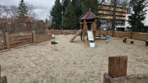 - Całość otoczona ogrodzeniem dla bezpieczeństwa maluchów