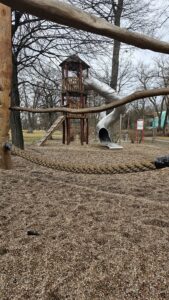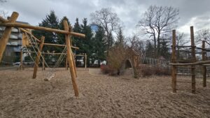 Park Kleciński we Wrocławiu ma niewielki plac zabaw. Jest on wyjątkowy dzięki tunelom z wierzby i sieci linowym.