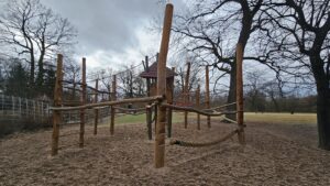 Obok tuneli, plac oferuje system konstrukcji linowych. Znajdziesz tu mosty linowe i sieci do wspinaczki. Dają dzieciom wiele wyzwań i pomagają w rozwoju.