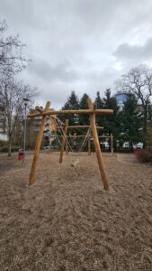 - Drewniane konstrukcje i elementy zabawowe świetnie komponują się z parkowymi terenami.